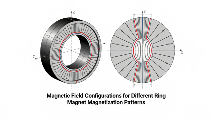 Radiaalinen magnetointi:Magneettiset navat sylinterimäisellä sisä- ja ulkopinnalla. Suositellaan harjattomille tasavirtamoottoreille, servomoottoreille ja pyöriville koodereille, joissa magneettikenttä on yhdensuuntainen pyörimisakselin kanssa.